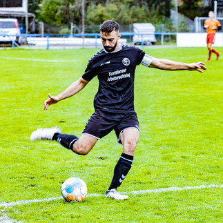 Die DJK versuchte es dann mit Distanzschüssen. Kurz vor dem Pausenpfiff hatte sie damit auch Glück, als ein abgefälschter Schuss von Max Schneider links oben im Tor der Konstanzer landete.